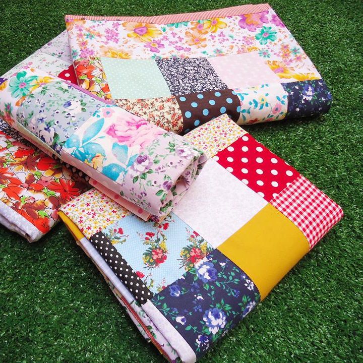 Colcha feita com técnica artesanal de patchwork com um método de costura como era feito "no tempo da vovó"